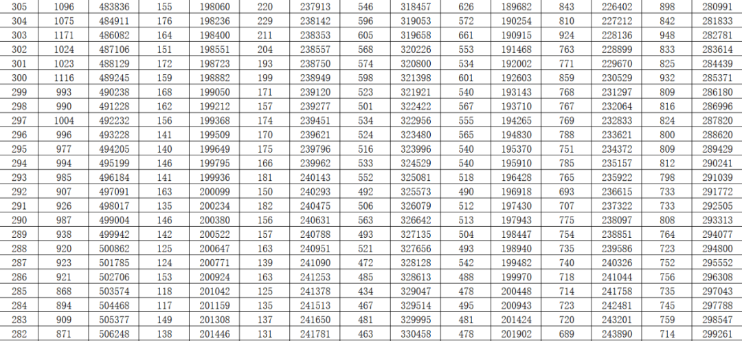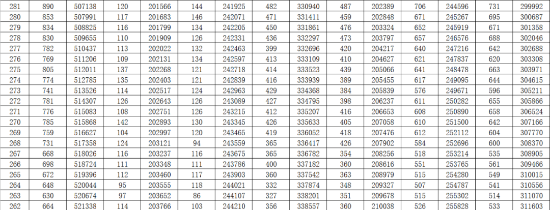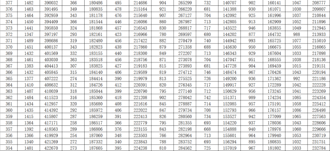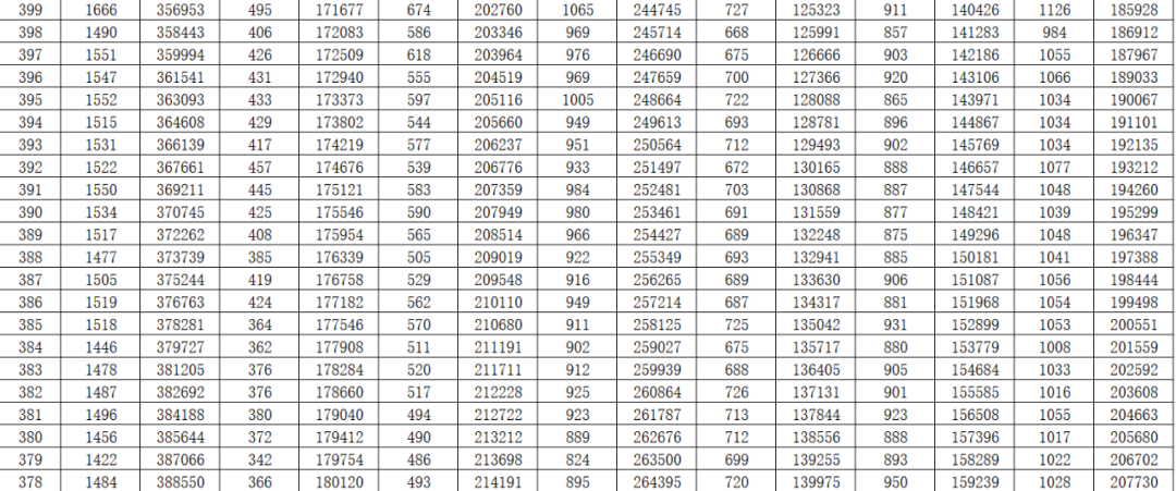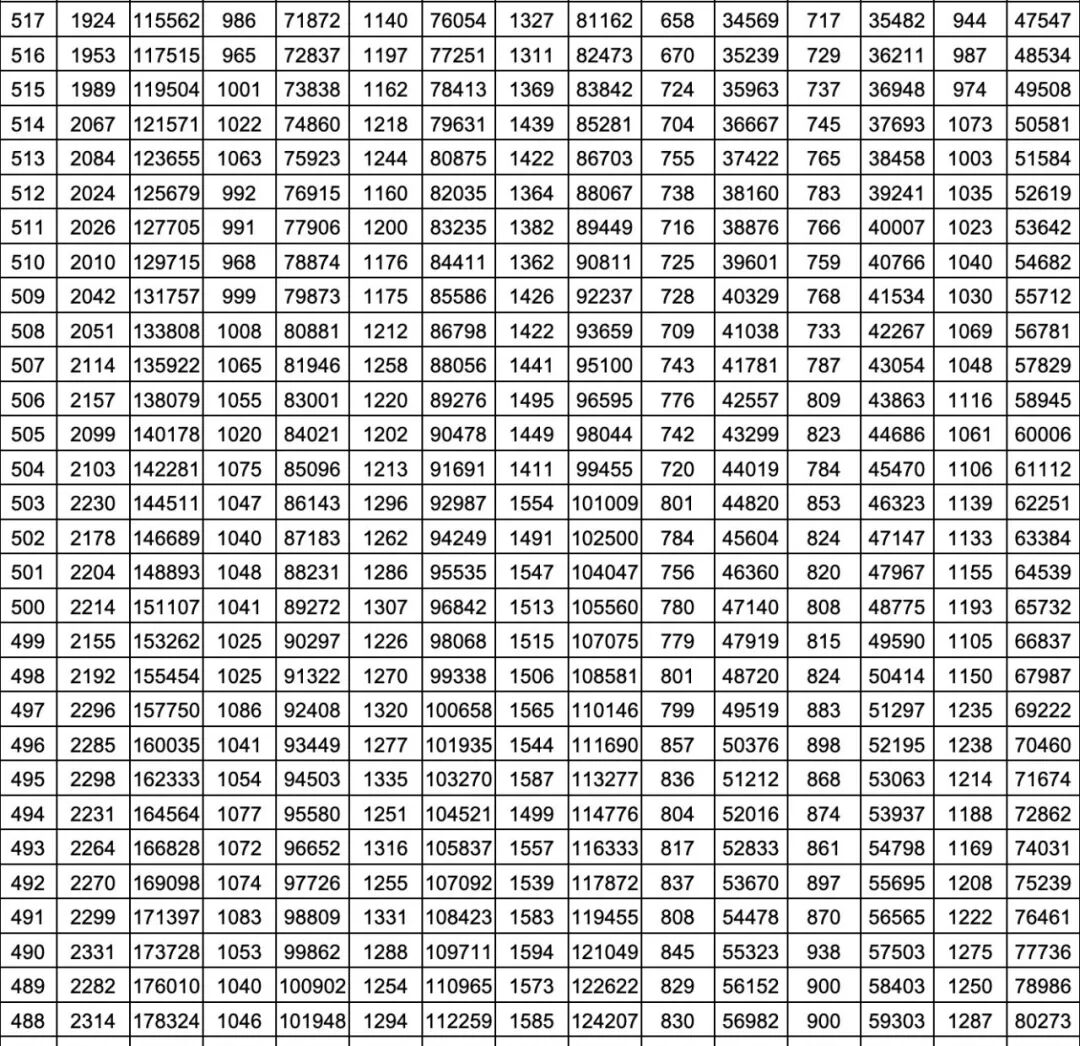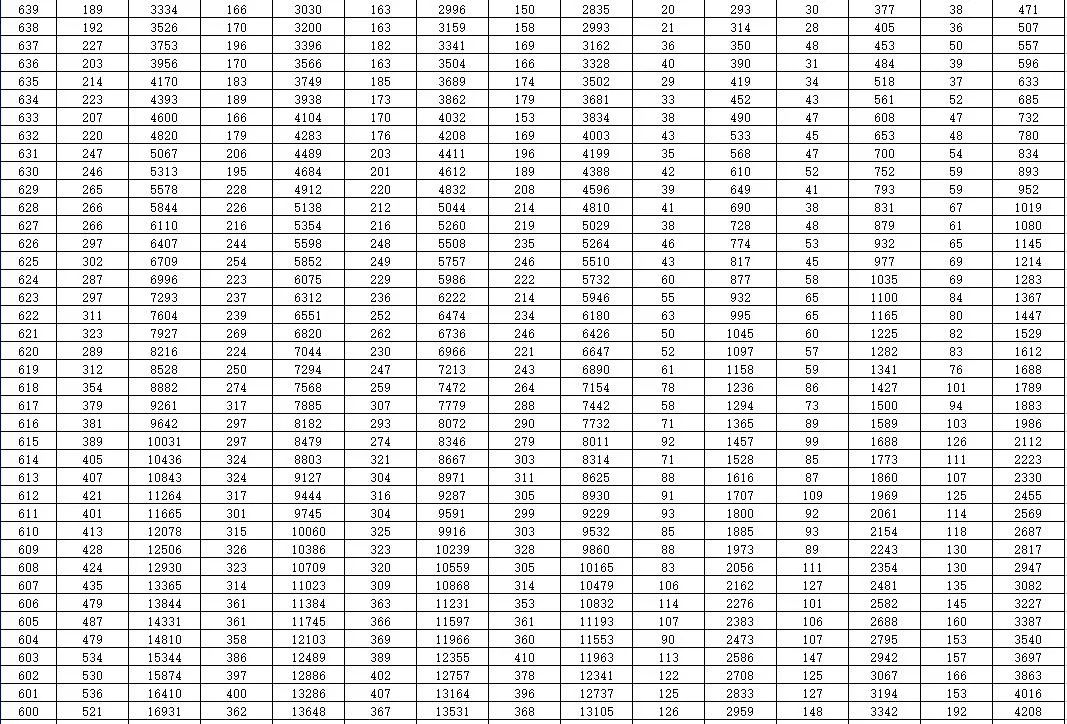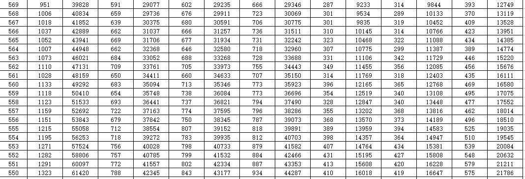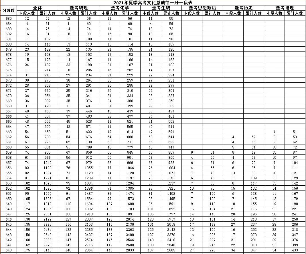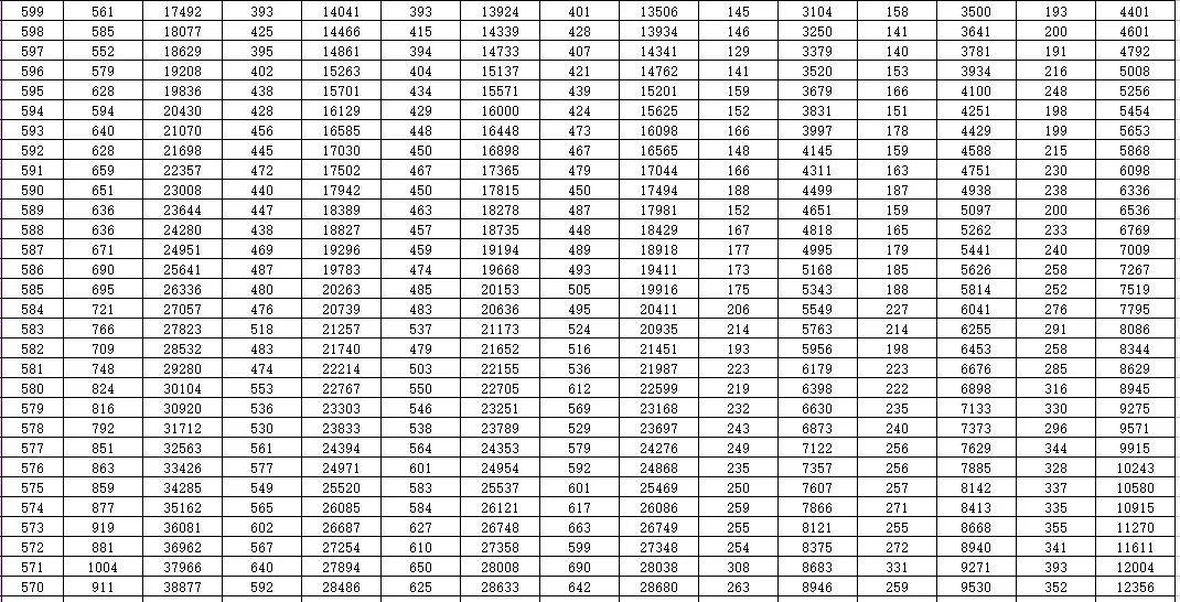 就是每一个分数,在整个山东省有多少名考生。考生在全省排在一个什么位次上,都能通过这个一分一段表看出来。