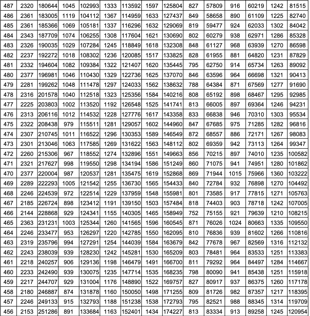 一分一段统计表