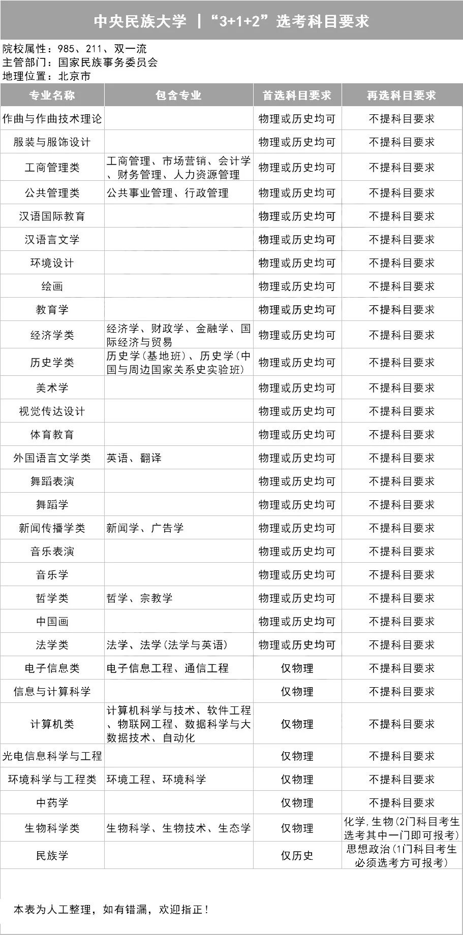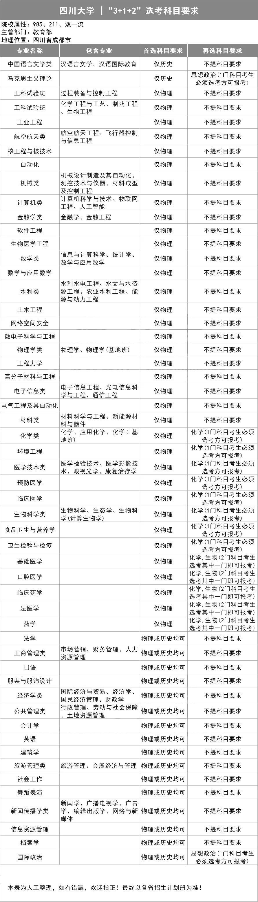 专业选不好,会影响未来的大学学习和今后的职业生涯。因此,我们必须立足于未来专业和职业的考虑。从未来大学专业来说,学生感兴趣的学科,也更容易匹配相应的专业;反之,不感兴趣的学科,即使选了,也不利于自己大学专业的选择,反而缩小了专业选择的范围。部分985高校热门专业“3+1+2”选科要求