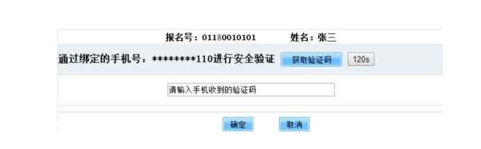 考生输入需绑定的手机号码,点击“发送验证码”按钮,系统向输入的手机号发送一条短信验证码,考生输入收到的短信验证码,点击“确认”按钮。