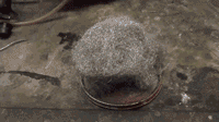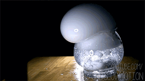 原理:其实这就是经典的中学化学实验氨气喷泉:充满氨气的瓶子接触水,氨气迅速在水中溶解,瓶内气压降低,水倒吸进瓶中形成喷泉,pH的变化又让指示剂变色。只不过,在这里水溶液中加入的指示剂不是酚酞,而是百里酚蓝,它从中性的黄色变成碱性的蓝色。花絮:氨气喷泉其实还有更多玩法,比如说,让它发光。下面展示的就是一个鲁米诺氨气喷泉:“喷泉”的倒吸依然由氨气溶解引发,但下方的两条管子分别接上了碱性鲁米诺溶液和氧化剂次氯酸钠溶液,两种溶液被吸进瓶中混合引发反应,就让喷泉发出了漂亮的蓝光。危险:较低。氨气会有刺激性,不过不用我说你大概也会躲着它的……