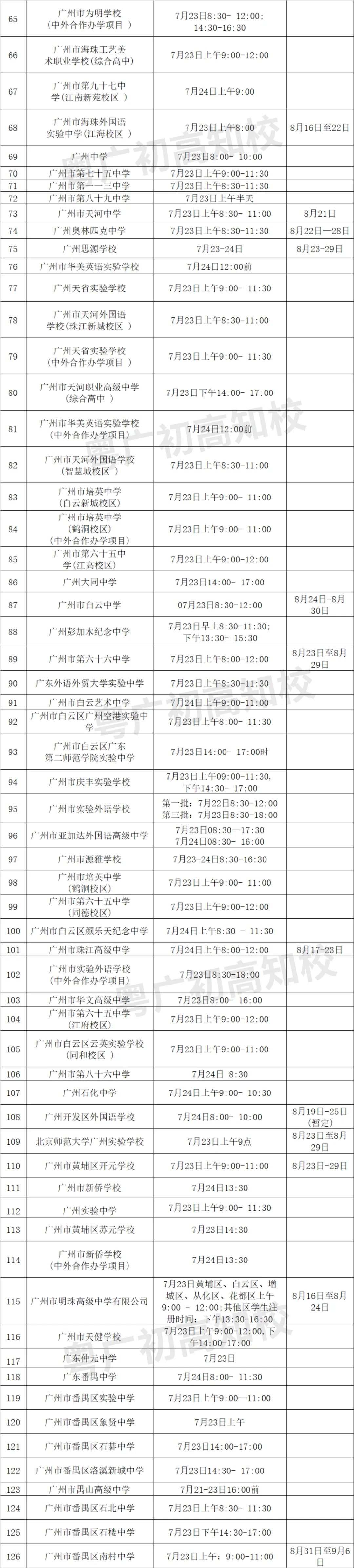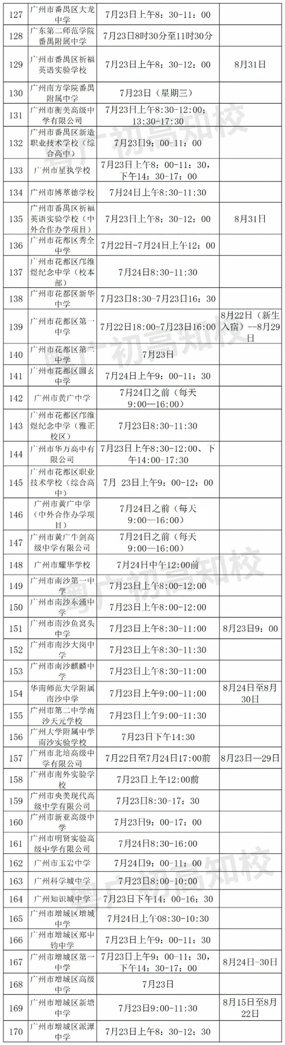 目前,广州市高中阶段学校招考服务平台已经公布了190所普通高中的《新生注册报到须知》,各校的新生报到时间、军训时间随之出炉。