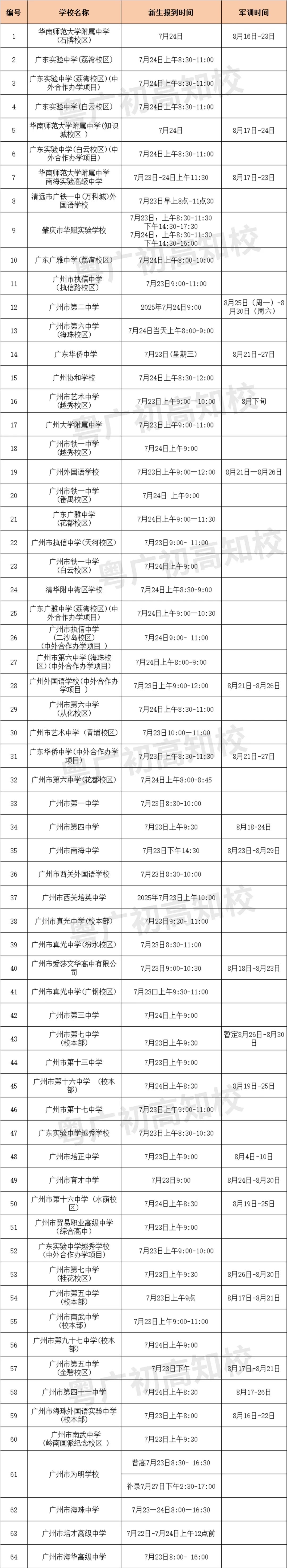 02 2025年广州各校注册时间、军训时间参考