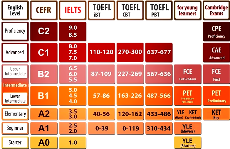 1、“高考是学习的指挥棒,课标是握着指挥棒的手”。当前中高考英语呈现的“雅思化”趋势,实际是在向“欧洲语言共同参考框架CEFR(Common European Framework Reference)”靠拢。雅思、剑桥KET/PET均明确对标CEFR。托福考试也宣布自2026年1月起改革成绩报告体系,与CEFR衔接。与其说“中高考英语雅思化”,真正的洞察应为——中高考英语的“欧标化”、“世界化”。下图为雅思、托福、剑桥英语等与CEFR(第二列)的分值与难度对照。