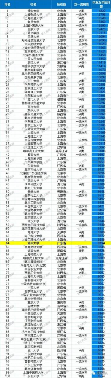 值得一提的是,像深圳大学、汕头大学这类的双非院校,毕业生工资水平也很高,超过了西工大、吉大、重大等985大学,可谓相当不容易。 本站内容收集整理于网络,多标有原文出处,本站仅提供信息存储空间服务。如若转载,请注明出处。