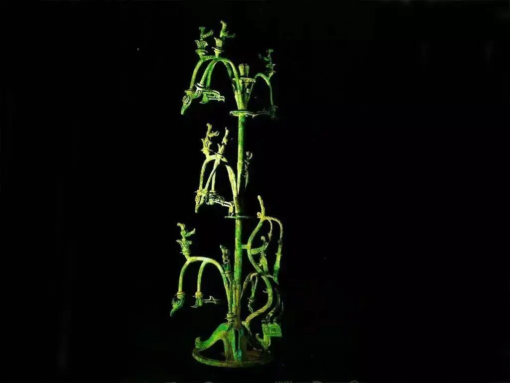 三星堆出土的青铜神树被很多人认为就是《山海经》中的扶桑。《山海经·大荒东经》中有这样的记载:“大荒之中,有山名曰孽摇頵羝。上有扶木,柱三百里,其叶如芥。有谷曰温源谷。汤谷上有扶木,一曰方至,一曰方出,皆载于乌。”《山海经·海外东经》中记载:“汤谷上有扶桑,十日所浴,在黑齿北。居水中,有大木,九日居下枝,一日居上枝。”之前三星堆出土的青铜神树共有八棵,其中修复完整的一棵高达395厘米,是全世界已发现的最大的单件青铜文物,被命名为一号神树。另外还有一棵只有下半部分树身,被命名为二号神树。一号神树由基座和主体两部分组成,树顶已残缺,基座仿佛三座山相连,主干三层,于山顶节节攀升,树的树枝分为三层,每层三枝,树枝上分别有两条果枝,一条向上,一条下垂,果托硕大,全树共有九只鸟,站立在向上果枝的果实上。这两者的关系是说明三星堆中的就是扶桑,还是说《山海经》中记载的确有其事?